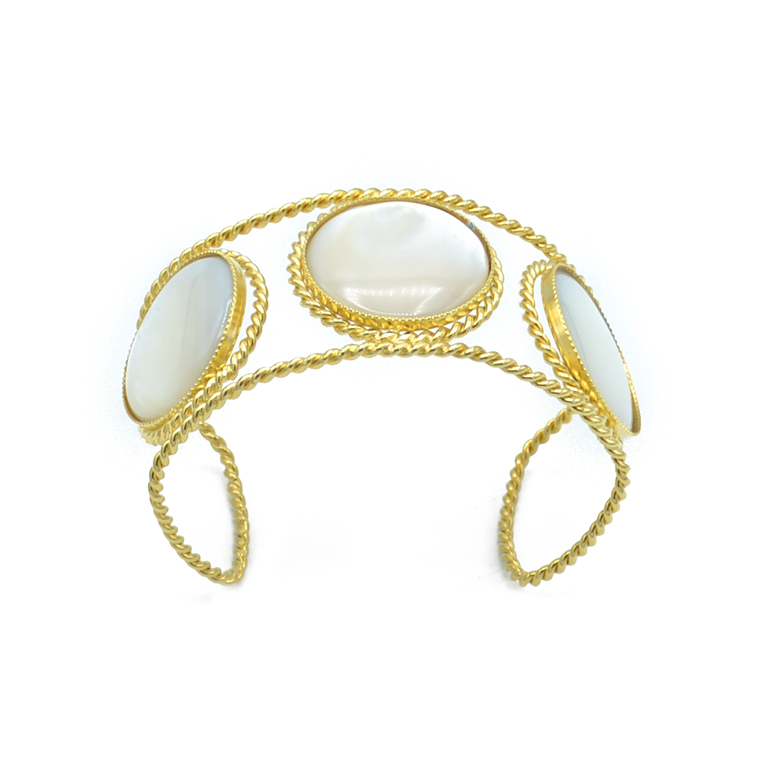 GAIA : Bracelet manchette 3 pierres de Nacre