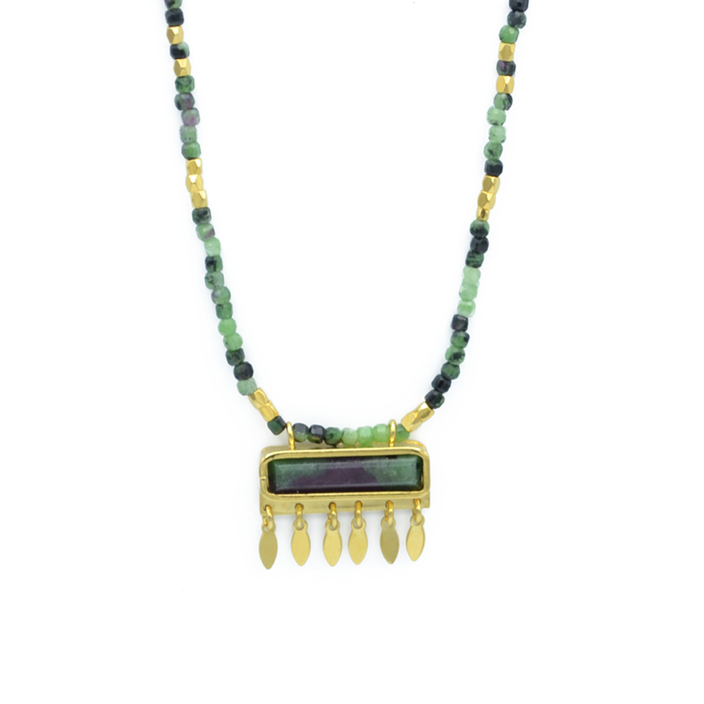Idéal pour ajouter une touche tendance, ce collier bohème en perles orné d’une pierre rectangulaire accrochera la lumière et sublimera votre tenue.